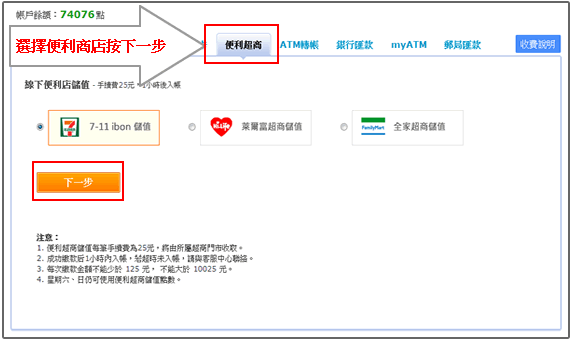 PS:每次繳款金額不能少於 125 元,不得大於 20000 元(包含25元手續費)。