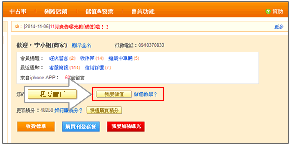 登入【會員中心】,點選會員中心頁面中間的【我要儲值】進入儲值列表。